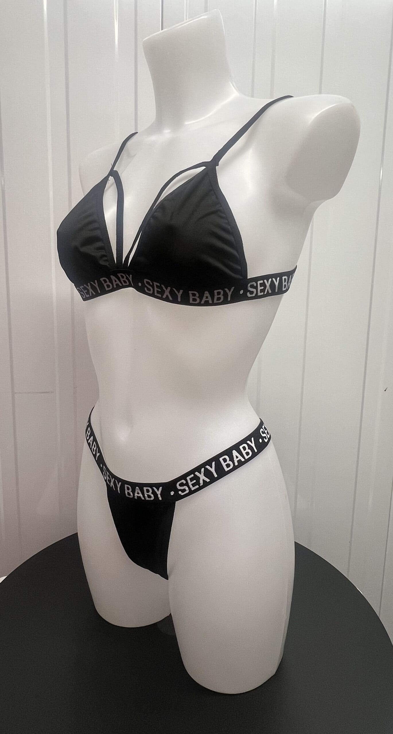 • Flattering two-piece set (bra/top and matching bottoms)
