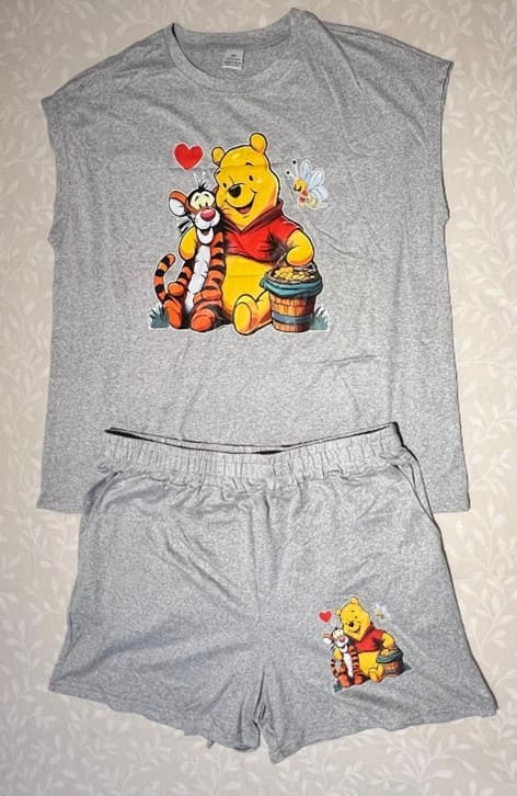 The sleeveless top is designed for ease of movement and breathability, with a soft, lightweight fabric that feels gentle on the skin. Its standout detail is the charming graphic on the front of the top and the shorts, showcasing two sitting toys that add a cute and youthful vibe to the overall look.